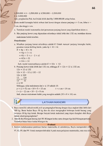 b. Panjang kawat tidak lebih dari 132 cm, sehingga = 12 + 12 ≤ 132 cm.