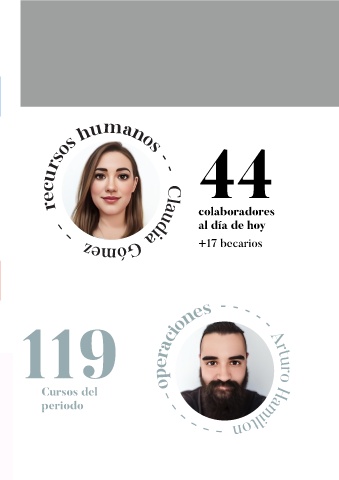 44 colaboradores al día de hoy recursos humanos - - Claudia Gómez - - +17 becarios 119 Cursos del operaciones - - - - - Arturo Hamilton - - - - - - periodo