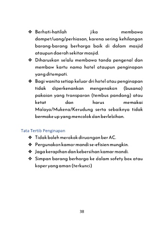 ❖  Simpan barang berharga ke dalam sofety box atau