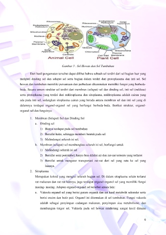 Gambar 3 : Sel Hewan dan Sel Tumbuhan