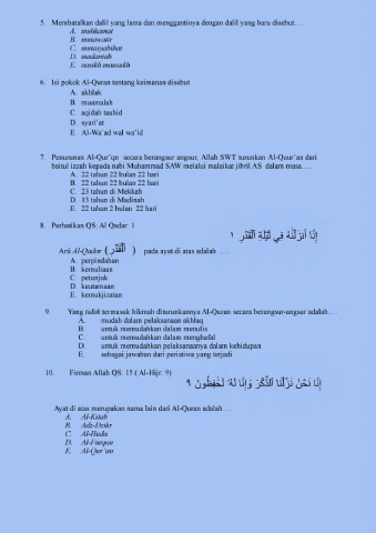 6. Isi pokok Al-Quran tentang keimanan disebut