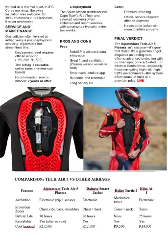 · The airbag is reusable, (Plasma version excels in riders in South Africa—especially
