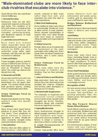 Many female riders report feeling South African motorcycle culture is