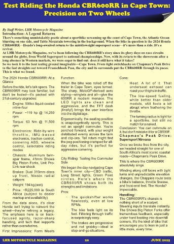 to the fast straights out toward Franschhoek Pass, the city and its surrounds put the CBR600RR through its paces.