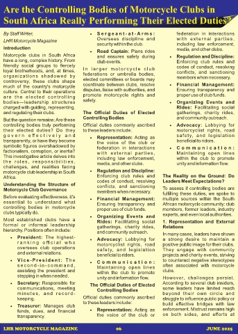 Motorcycle clubs in South Africa and ensures safety during · Regulation and Discipline: