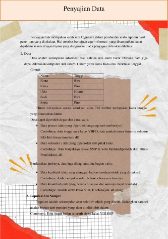 Penyajian data merupakan salah satu kegiataan dalam pembuatan suatu laporan hasil