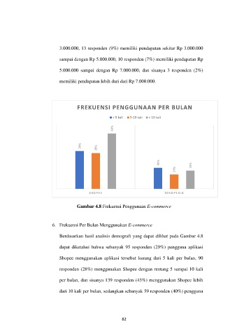 per bulan, dan sisanya 139 responden (43%) menggunakan Shopee lebih