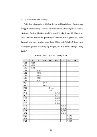 diperoleh nilai outer loading yang dapat dilihat pada Tabel 4.2. Pada outer