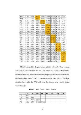 Tabel 4.7 Nilai Fornell Lacker Criterion