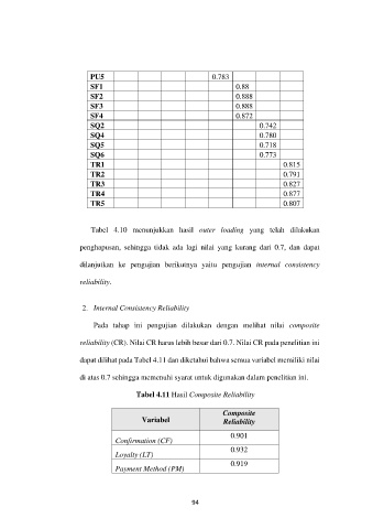 reliability (CR). Nilai CR harus lebih besar dari 0.7. Nilai CR pada penelitian ini