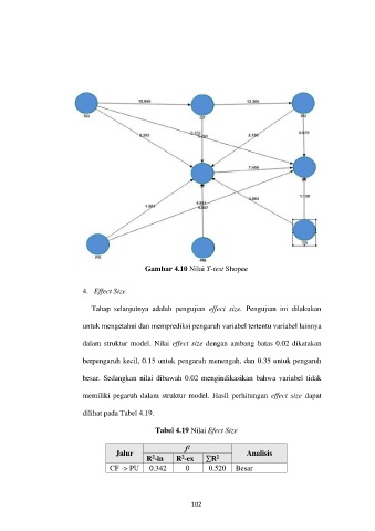 dalam struktur model. Nilai effect size dengan ambang batas 0.02 dikatakan