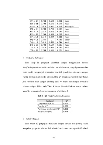 relevance dapat dilihat pada Tabel 4.20 dan diketahui bahwa semua variabel