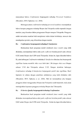 Confirmation terhadap E-Satisfaction berpengaruh positif dan signifikan. Hasil