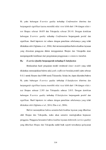 H3 yaitu hubungan E-service quality terhadap Confirmation diterima dan