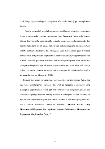 Peneliti menambah variabel payment method karena mayoritas e-commerce