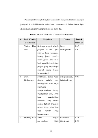 Tabel 2.2 Klasifikasi Bisnis E-commerce di Indonesia