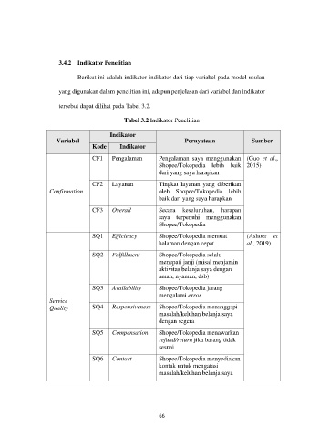 yang digunakan dalam penelitian ini, adapun penjelasan dari variabel dan indikator