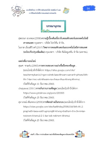 สุพรรษา ยวงทอง.(2558).ความรู้เบื้องต้นเกี่ยวกับคอมพิวเตอร์เเละเทคโนโลยี