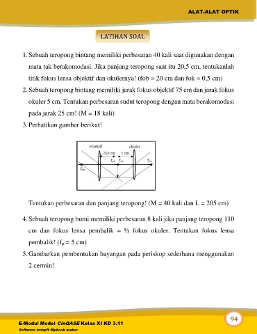 1. Sebuah teropong bintang memiliki perbesaran 40 kali saat digunakan dengan