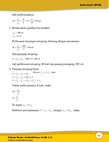 Jadi perbesaran teropong 40 kali dan panjang teropong 205 cm
