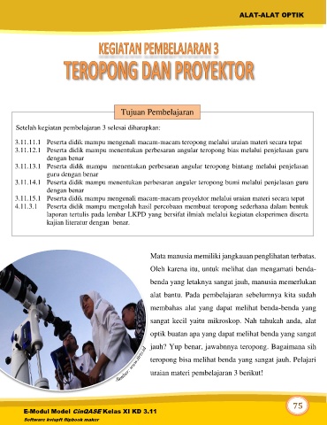 3.11.11.1 Peserta didik mampu mengenali macam-macam teropong melalui uraian materi secara tepat