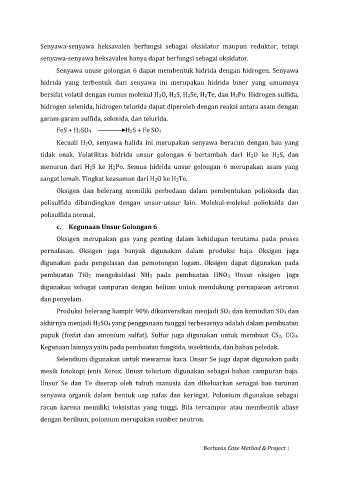 tidak enak. Volatilitas hidrida unsur golongan 6 bertambah dari H2O ke H2S, dan