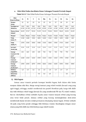 Tabel 10.11 Tabel Sifat Fisika Unsur Golongan Transisi Periode Empat