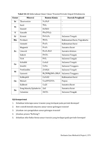 Tabel 10.13 Keberadaan Unusr-Unsur Transisi Periode Empat Di Indonesia