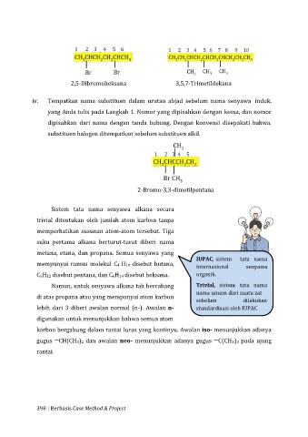 iv. Tempatkan nama substituen dalam urutan abjad sebelum nama senyawa induk,