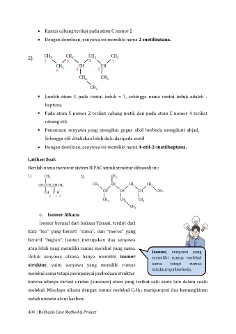 Pada atom C nomor 2 terikat cabang metil, dan pada atom C nomor 4 terikat