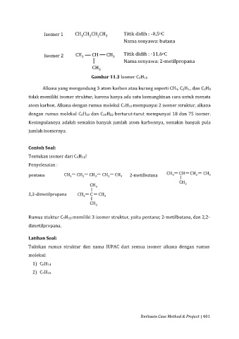 atom karbon. Alkana dengan rumus molekul C4H10 mempunyai 2 isomer struktur, alkana