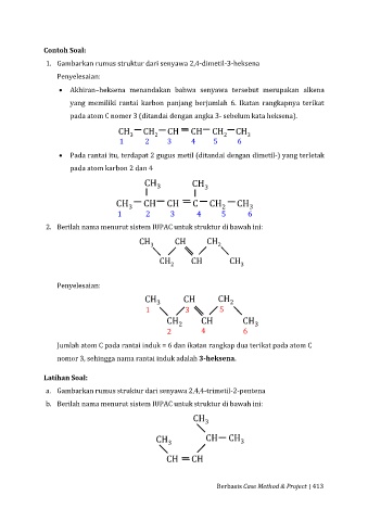 Jumlah atom C pada rantai induk = 6 dan ikatan rangkap dua terikat pada atom C