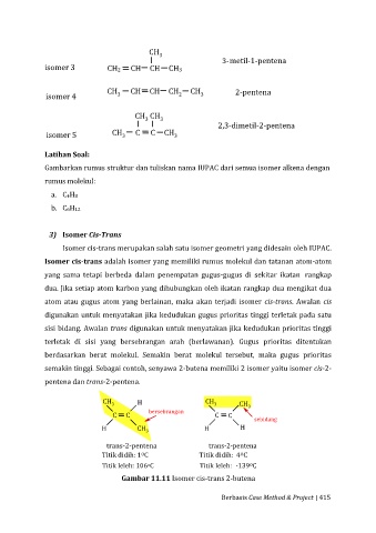 semakin tinggi. Sebagai contoh, senyawa 2-butena memiliki 2 isomer yaitu isomer cis-2-