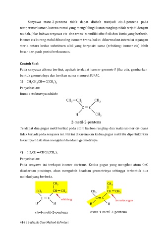 Terdapat dua gugus metil terikat pada atom karbon rangkap dua maka isomer cis-trans
