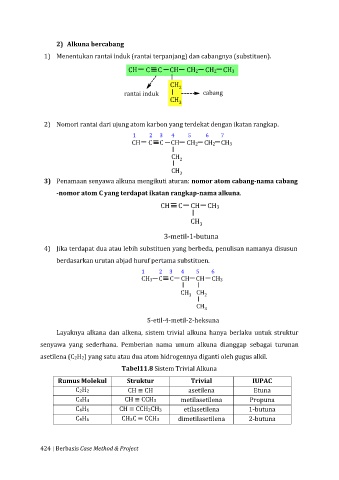 3) Penamaan senyawa alkuna mengikuti aturan: nomor atom cabang-nama cabang
