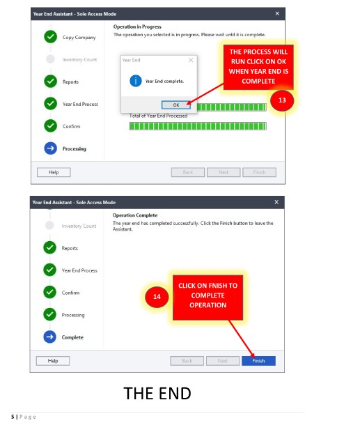 THE PROCESS WILL RUN CLICK ON OK WHEN YEAR END IS COMPLETE 13 CLICK ON FNISH TO 14 COMPLETE OPERATION THE END 5 | P a g e