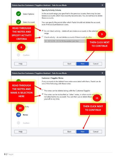 READ THROUGH THE NOTES AND SPECIFY ACTIVITY 9 CRITERIA THEN CLICK NEXT TO CONTINUE 8 READ THROUGH THE NOTES AND MAKE A SELECTION HERE 11 THEN CLICK NEXT 10 TO CONTINUE 3 | P a g e