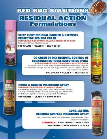 Kills Bedbugs, Exposed Thrips, Ants, Cockroaches, Earwigs, Spiders, Sow Bugs, Silver sh, Dog & Cat Fleas, Brown Dog Ticks, House Flies, Leaf-Hoppers, Aphids, Leaf Eating Caterpillars & Rose Midges.