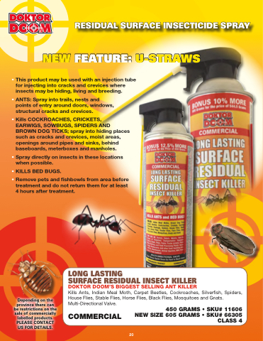 Kills Ants, Indian Meal Moth, Carpet Beetles, Cockroaches, Silver sh, Spiders, House Flies, Stable Flies, Horse Flies, Black Flies, Mosquitoes and Gnats.