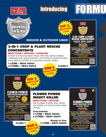 Kills all stages of spider mites, aphids and white y, and adult & nymph stages of thrips.