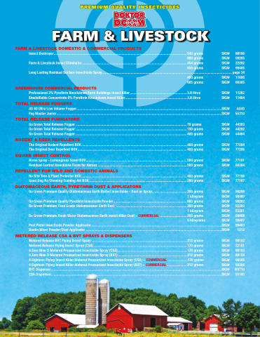 Insect Destroyer................................................................................................................................................. 540 grams 680 grams Farm & Livestock Insect Eliminator .................................................................................................................. 454 grams 650 grams
