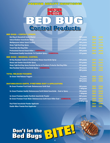 Bed Bug & Household Insect Blaster . . . . . . . . . . . . ...................................... Indoor/Outdoor Insecticide Spray. . . . . . . . . . . . . . ....................................... Multipurpose Indoor Insect Control . . . . . . . . . . . . . ...................................... Sleep Tight Bed Bug Spray . . . . . . . . . . . . . . . . . . . . . . . . . .. . . . . . . . . . . . . . . . . . . . . . . . . . . . . . . . Travel Size Bed Bug Killer . . . . . . . . . . . . . . . . . . . . ....................................... Professional Aerosol Insect Killer – COMMERCIAL . . . . . . . . . . . . . . . . . . . . . . . . . . . . . . . . . . . . . . . Professional Quality Insecticide 1% Pyrethrin Spray – COMMERCIAL. . . . . . . . . . . . . . . . . . . . . . . .