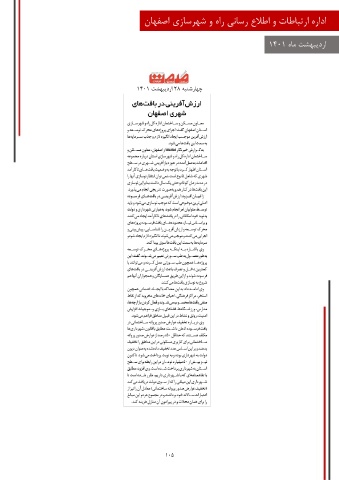 اداره ارتب÷اطات و اطلاع رسانی راه و شهرسازی اصفهان اردیبهشت ماه 1401 چهارشنبه 24اردیبهشت 1401 105