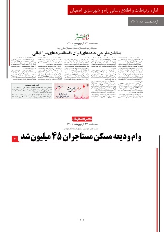 اداره ارتب÷اطات و اطلاع رسانی راه و شهرسازی اصفهان اردیبهشت ماه 1401 سه شنبه 27اردیبهشت 1401 سه شنبه 27اردیبهشت 1401 107