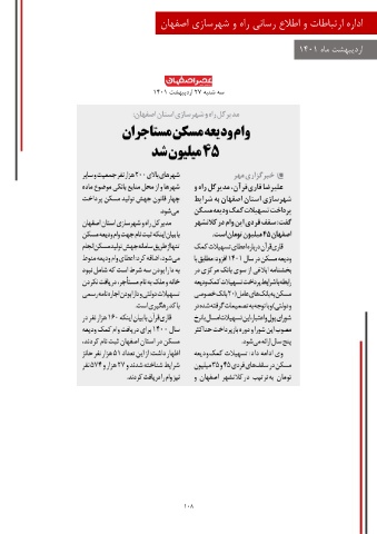 اداره ارتب÷اطات و اطلاع رسانی راه و شهرسازی اصفهان اردیبهشت ماه 1401 سه شنبه 27اردیبهشت 1401 104