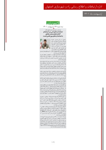 اداره ارتب÷اطات و اطلاع رسانی راه و شهرسازی اصفهان اردیبهشت ماه 1401 سه شنبه 27اردیبهشت 1401 109