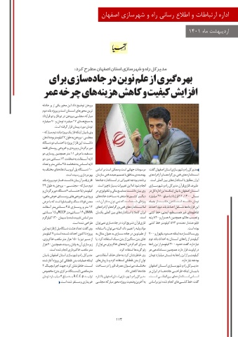 اداره ارتب÷اطات و اطلاع رسانی راه و شهرسازی اصفهان اردیبهشت ماه 1401 سه شنبه 27اردیبهشت 1401 113