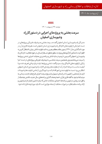 اداره ارتب÷اطات و اطلاع رسانی راه و شهرسازی اصفهان اردیبهشت ماه 1401 دوشنبه 26اردیبهشت 1401 116
