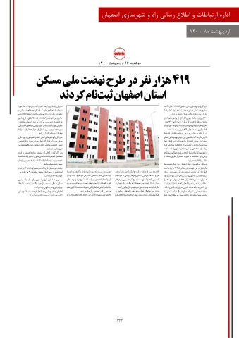 اداره ارتب÷اطات و اطلاع رسانی راه و شهرسازی اصفهان اردیبهشت ماه 1401 دوشنبه 26اردیبهشت 1401 122