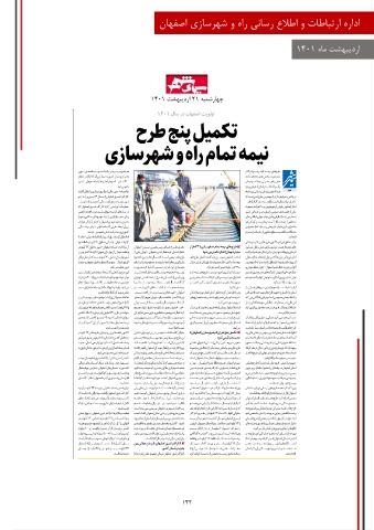 اداره ارتب÷اطات و اطلاع رسانی راه و شهرسازی اصفهان اردیبهشت ماه 1401 چهارشنبه 21اردیبهشت 1401 132